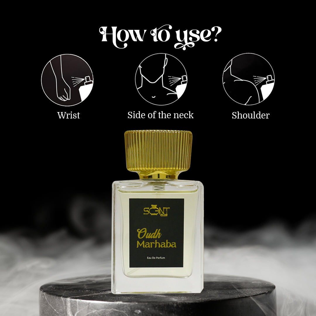 Encased in a sleek glass bottle crowned with a golden cap, Oudh Marhaba is an ode to timeless beauty β a scent that speaks of confidence, culture, and grace.